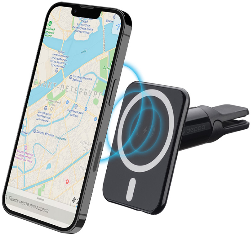 Беспроводная зарядка мощностью до 15 Вт быстро зарядит ваш смартфон без перегрева, а мощные магниты, аналогичные оригинальным MagSafe, удержат смартфон даже в экстремальных условиях.