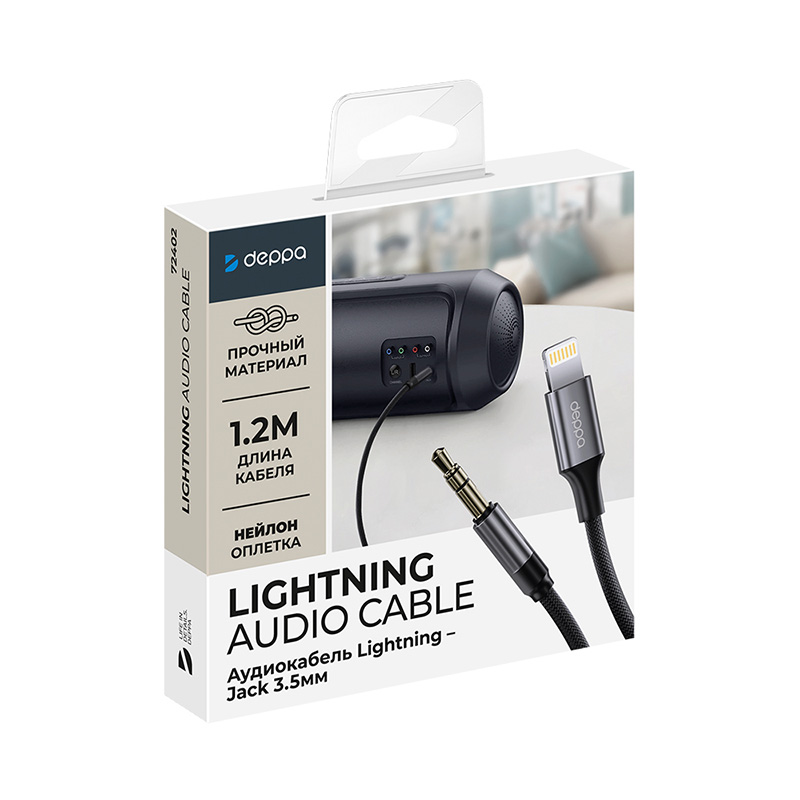 —Кабель Deppa Lightning/Jack 3.5 mm 1.2м Черный