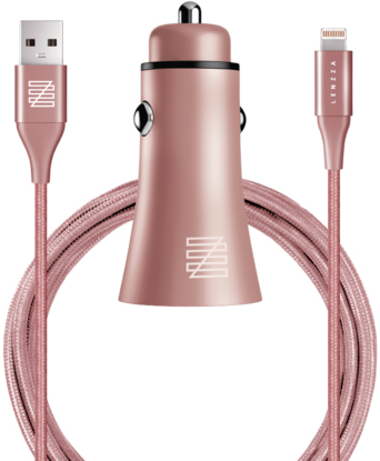 Автомобильно ЗУ Lenzza Razzo Metallic с двумя USB портами, дает возможность заряжать одновременно два устройства. В комплект входит кевларовый кабель Lightning to USB Cable. Изделие изготовлено из пластика. Напряжение на выходе равно 5 В.