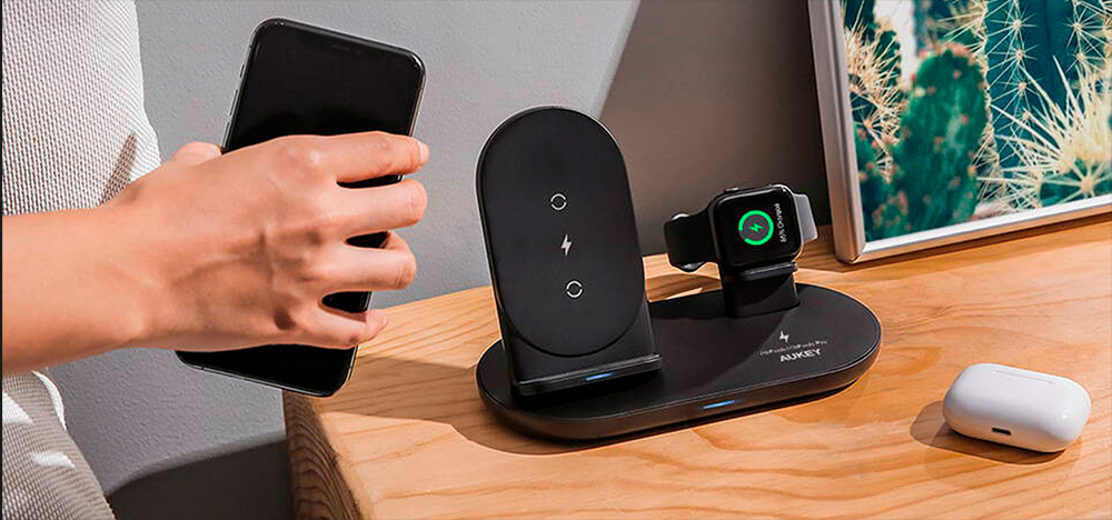 Aukey LC-A3 представляет собой беспроводное зарядное устройство для трех устройств - смартфона, AirPods и Apple Watch. Оно имеет компактный корпус, который не займет много пространства. Поддержка функции быстрой зарядки позволит пополнить заряд батареи гаджетов за считанные минуты. Выходная мощность ЗУ может иметь значение 2.5 или 7.5 Вт в зависимости от заряжаемого девайса.
