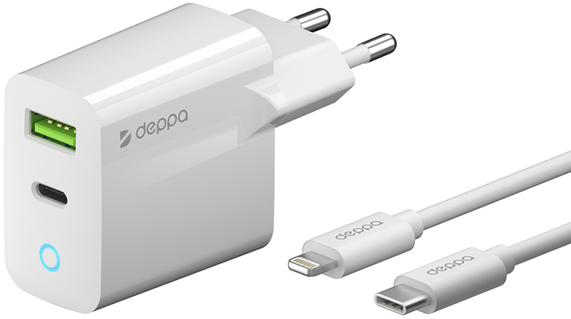 Адаптер питания Deppa Wall Charger USB/USB-C 20Вт + Кабель Lightning/USB-C