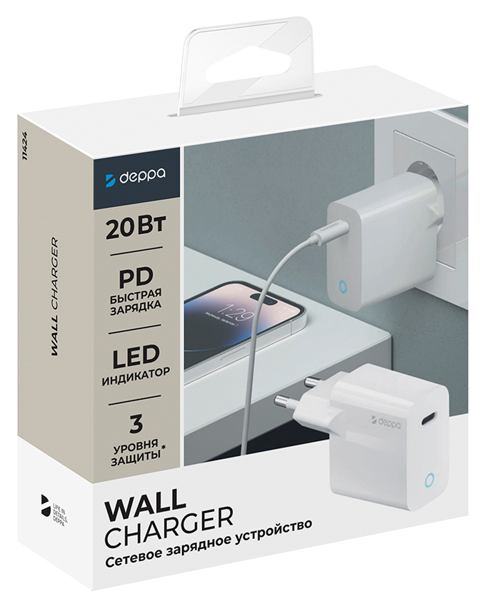 —Адаптер питания Deppa Power Delivery USB-C 20Вт White
