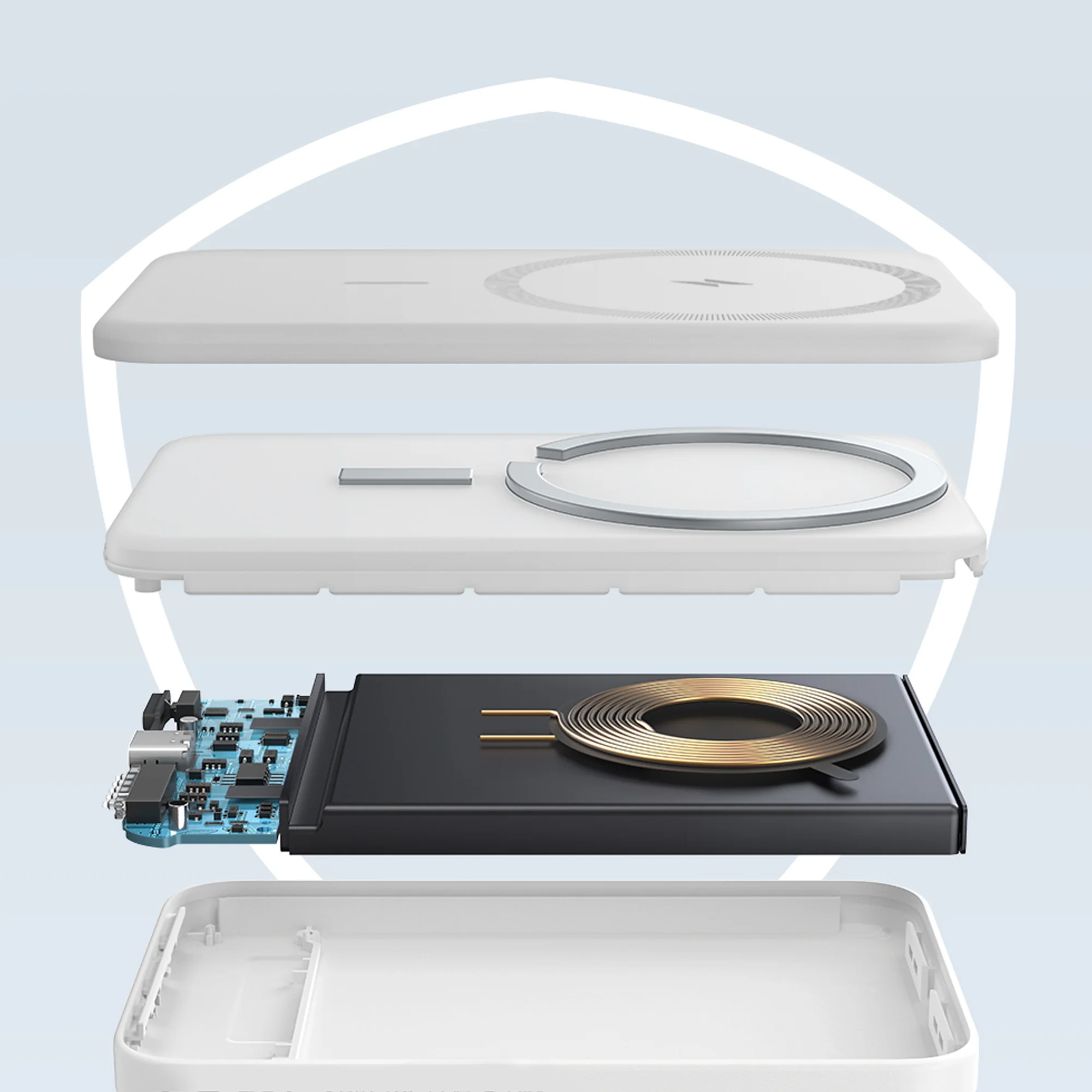Портативный аккумулятор Anker MagGo 621 удерживает ваш iPhone 13 или 12 с помощью MagSafe. При своих скромных размерах, помещающихся на ладони, магнитное портативное зарядное устройство емкостью 5000 мАч способно обеспечить 17 часов непрерывной работы. Эксклюзивная технология MultiProtect от Anker включает в себя расширенные функции безопасности, такие как контроль температуры, защита от перегрузки и многое другое, чтобы вы могли заряжать без забот.