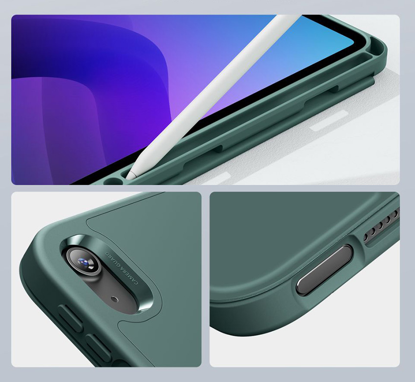 Верхняя крышка чехла защищает дисплей устройства и взаимодействует с системой сна и пробуждения устройства. Чехол имеет соответствующий отсек для Apple Pencil.