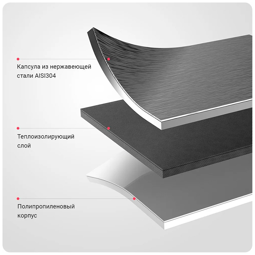Термокружка для кипячения, подогрева и поддержания температуры жидкости. Объем – 350 мл. Внутренняя капсула из нержавеющей стали марки 340. Встроенный дисплей с сенсорным управлением, многоступенчатая система регулировки температуры.