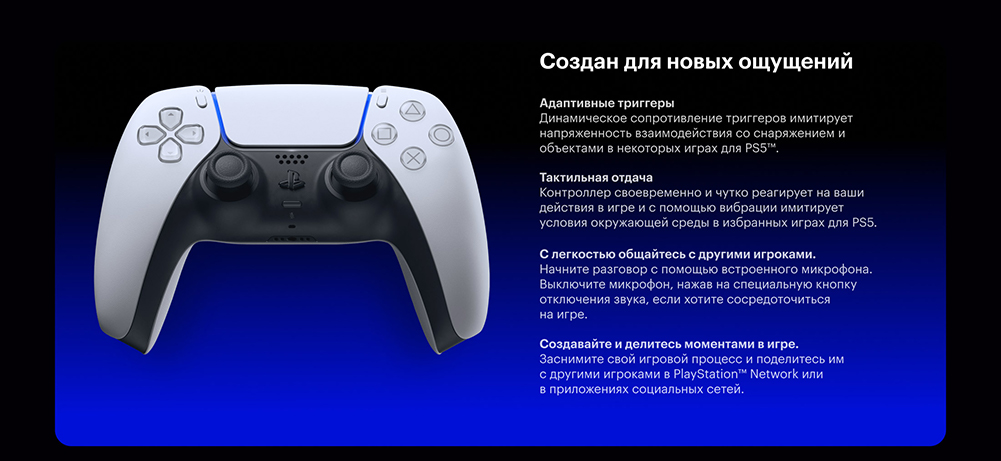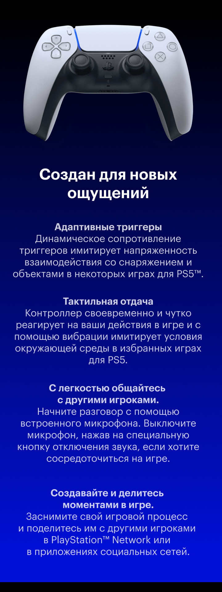 Геймпад DualSense, Кабель USB/USB-C, Кабель питания, Подставка под приставку