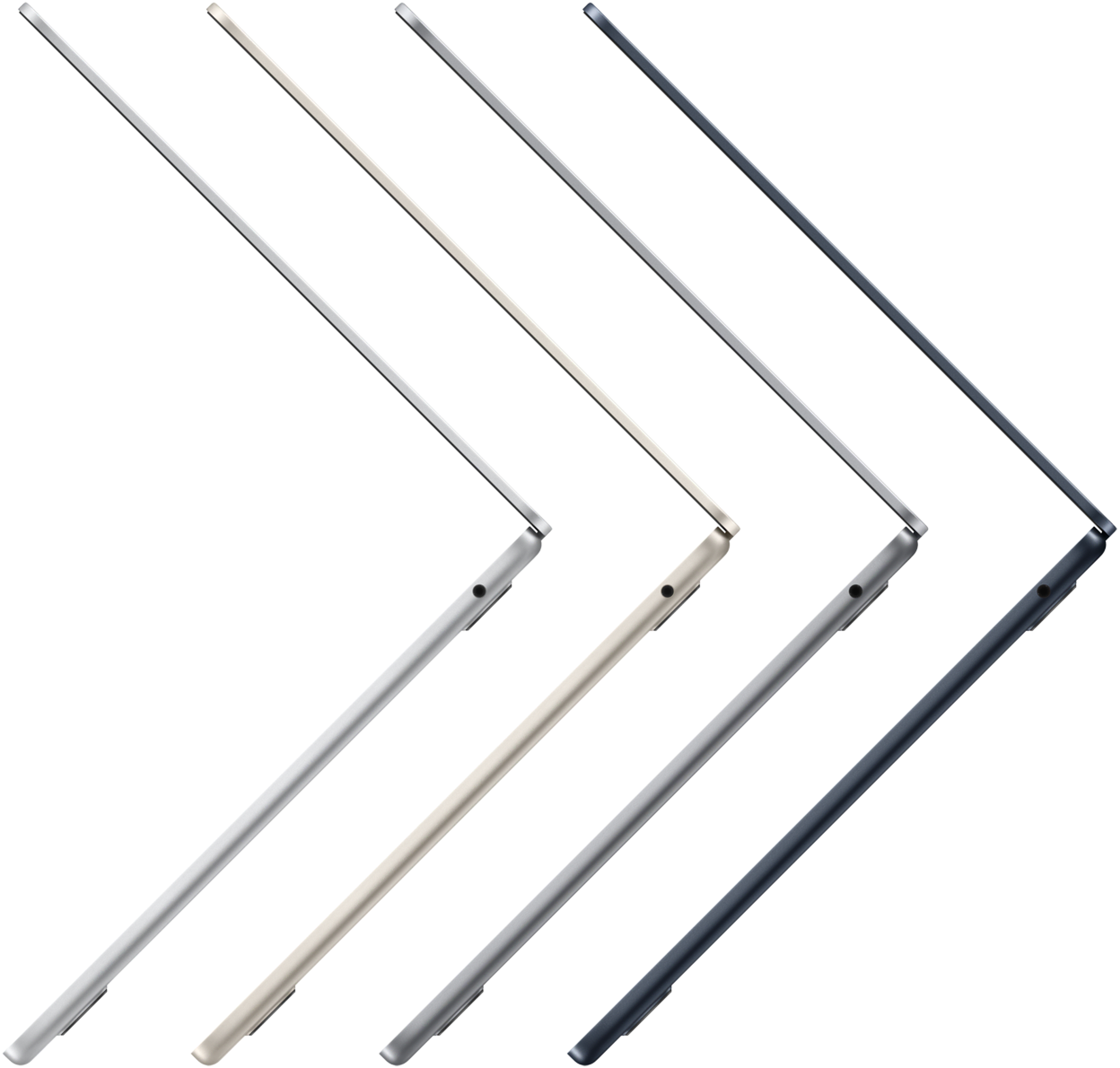 MacBook Air стал ещё компактнее и теперь доступен в четырёх великолепных цветах — с подходящим по цвету кабелем MagSafe для зарядки.
