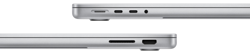 HDMI 2.1, MagSafe 3, Thunderbolt/USB 4, Разъем 3.5 mm, Слот для карт SDXC