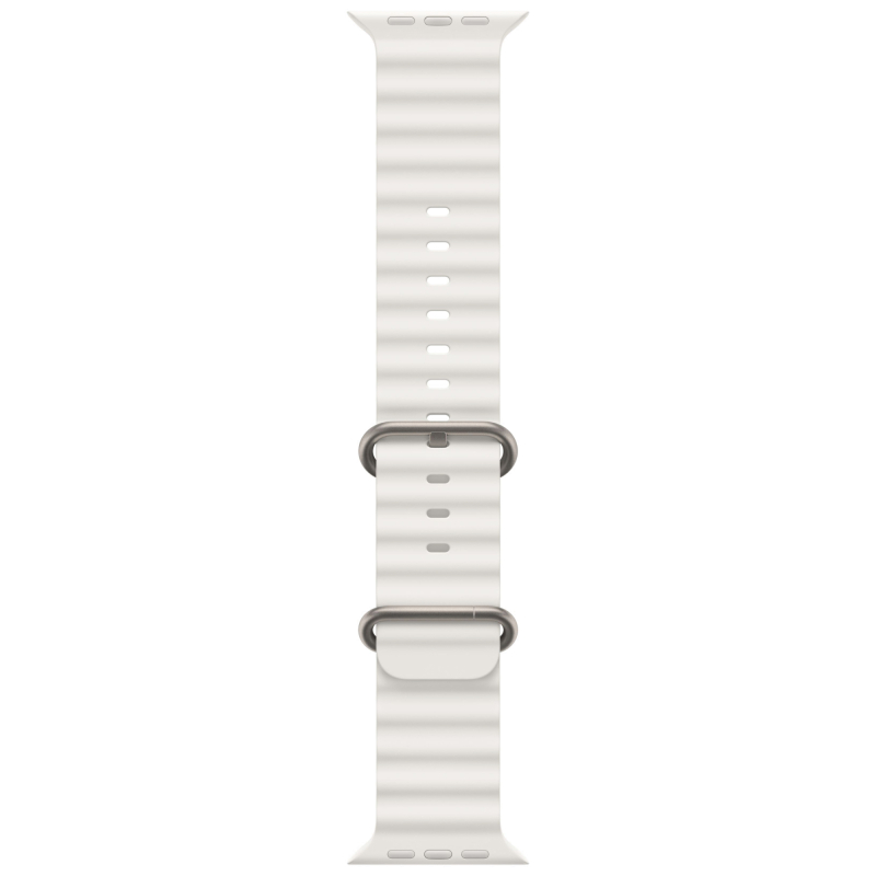 Apple Watch Ultra 2 showing compatibility with three different strap types, large display, rugged titanium case, orange action button and digital crown